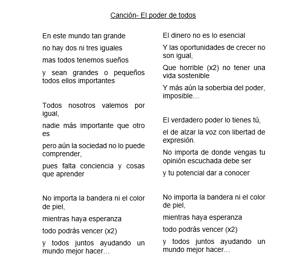 | Nosotros somos el cambio en la desigualdad Nosotros somos los que lo vamos a eliminar Empecemos a dar Para poder ser una mejor sociedad | Nosotros somos el cambio en la desigualdad Nosotros somos los que lo vamos a eliminar Empecemos a dar Para poder ser una mejor sociedad |